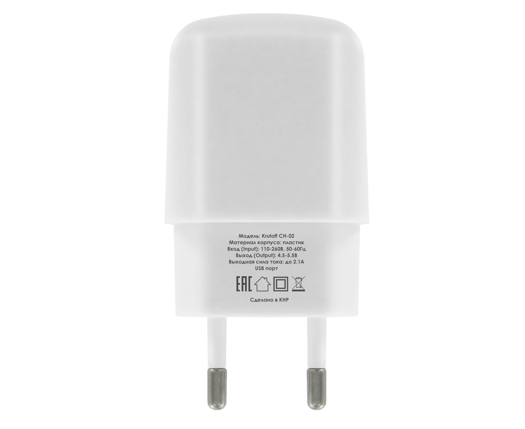 СЗУ Krutoff CH-02 1xUSB, 2.1A (white)