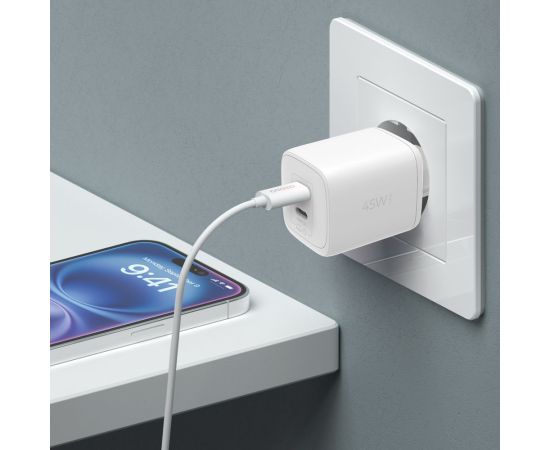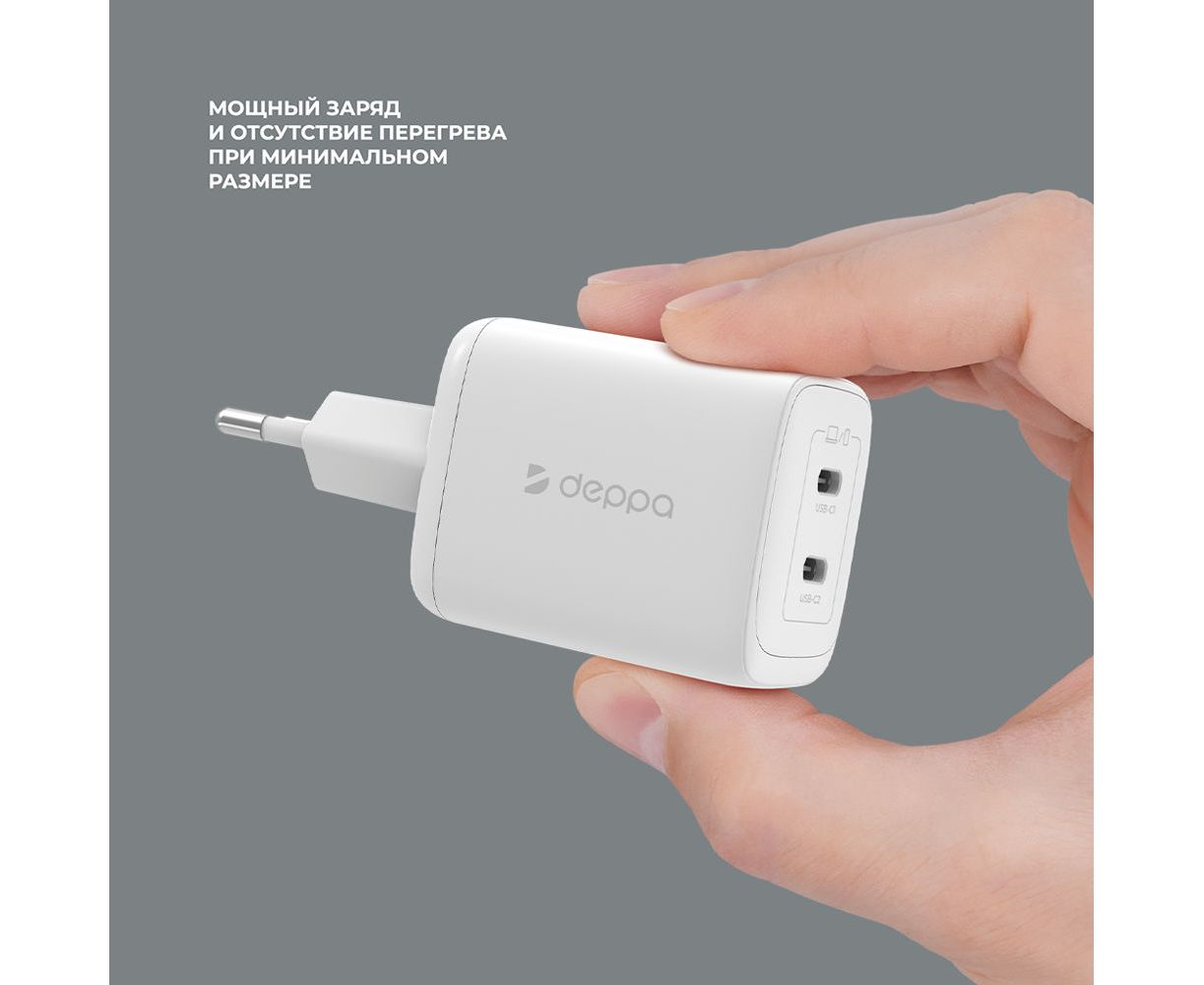 СЗУ 2xUSB-C, PD 3.0, QC 4.0+, 45W, GaN, белый, Deppa