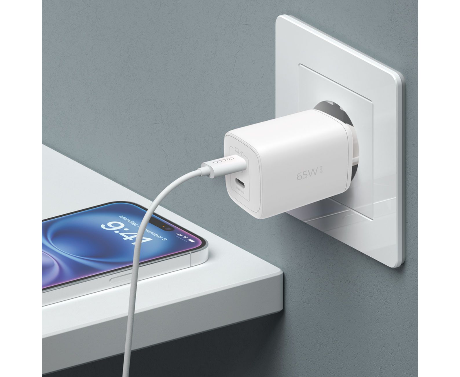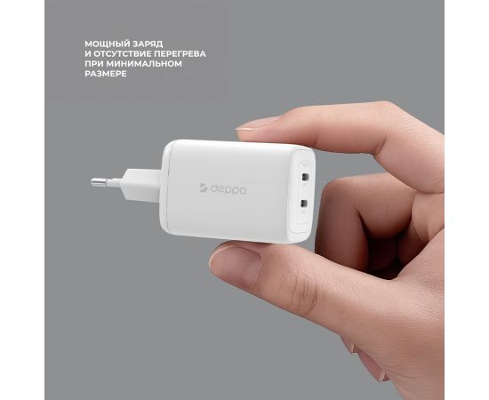 СЗУ 2xUSB-C, PD 3.0, QC 4.0, 65W, GaN, белый, Deppa