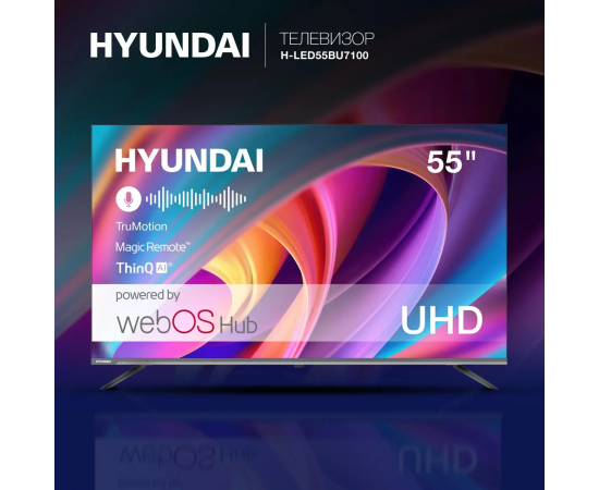 55" Телевизор Hyundai H-LED55BU7100 серый 3840x2160, 4K Ultra HD, 60 Гц, WI-FI, SMART TV, WebOS 22