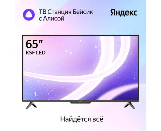 65 " Телевизор YANDEX YNDX-00077 черный 3840x2160, 4К Ultra HD, 60 Гц, WIFI, SMART TV, ТВ Станция с Алисой