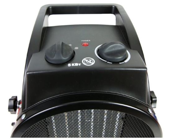 Взял эту пушку для прогрева своей автомастерской. У нее можно регулировать мощность, если на полную включить, то она не просто греет, жарит. При перегреве отключается. Она устойчивая, есть ручка для переноски. А еще есть вентиляция без нагрева.