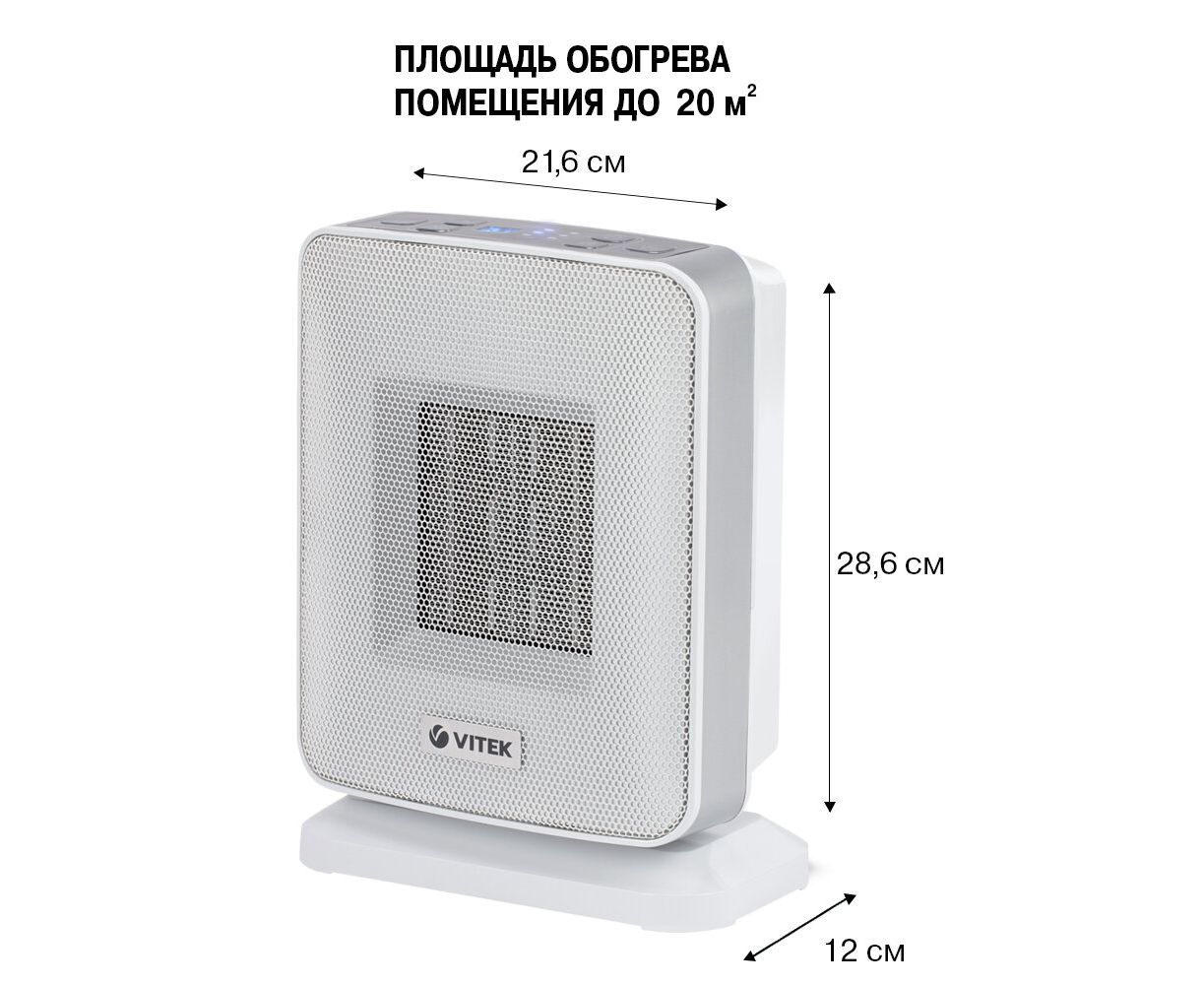 Тепловентилятор Vitek VT-2052 серый 1500Вт с термостатом, 2 режима