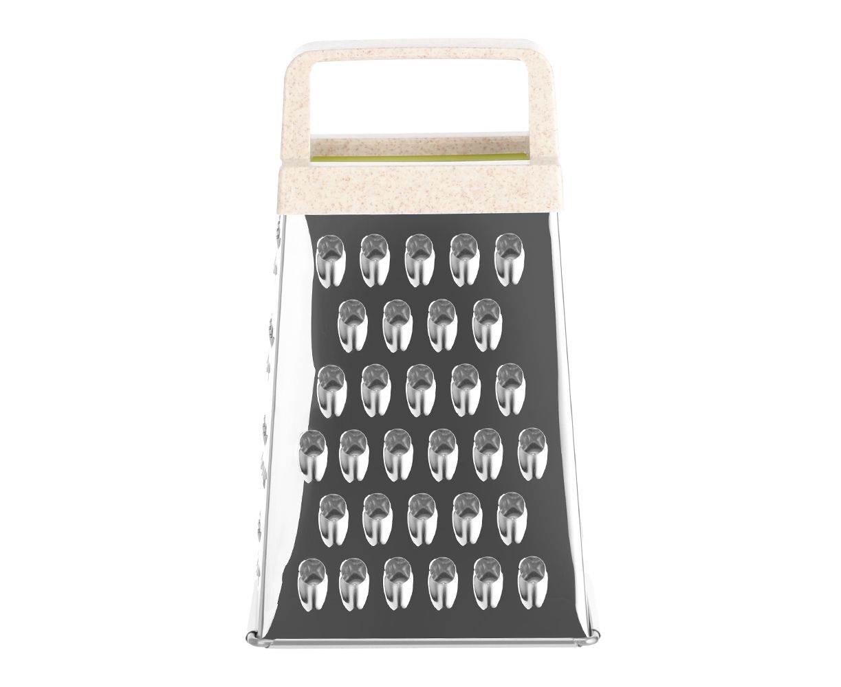 Удобная многофункциональная терка LARA поможет покрошить яйцо, дольку шоколада, орех, имбирь или снять кожуру мандарина. Для надежности использовали сталь повышенной жесткости 0,3 мм. Отделочный материал терки содержит рисовую шелуху. Приобретая данное изделие, вы вносите вклад в снижение потребления пластика.