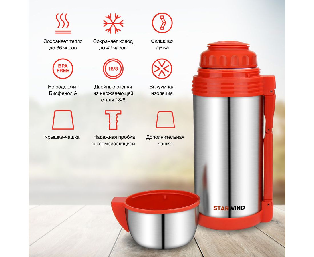 Термос Starwind 30-1800 серебристый/красный