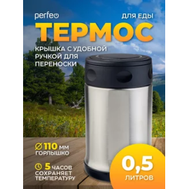 Термос для еды PERFEO с широким горлом, объем 0,5 л., нержавеющая сталь, (Арт. PF_C3724)