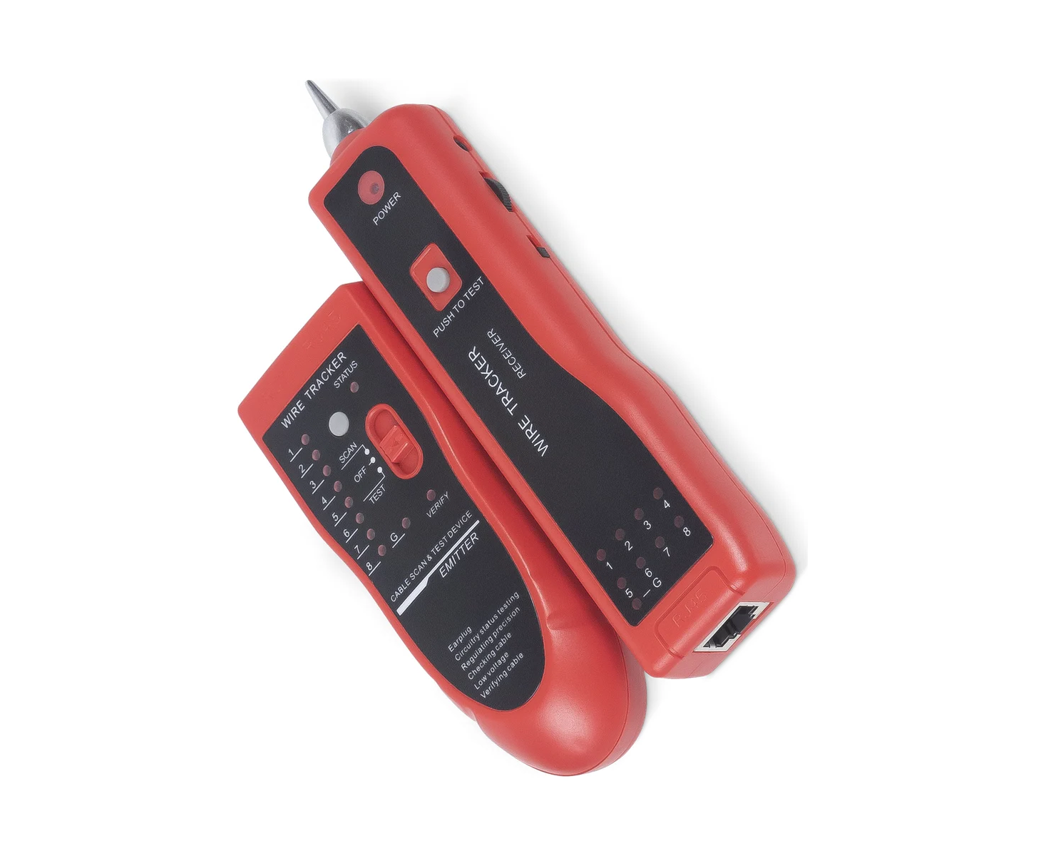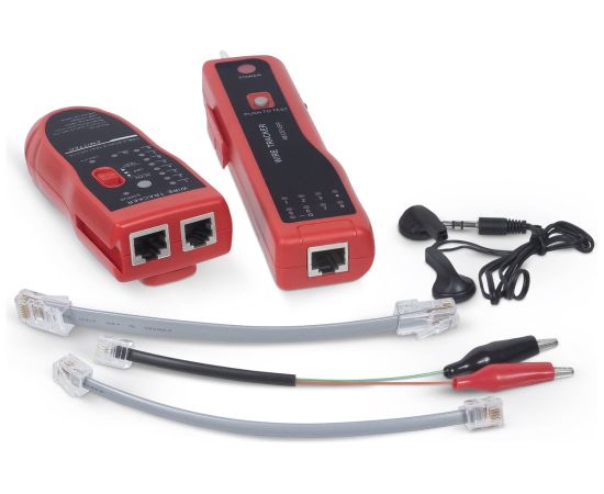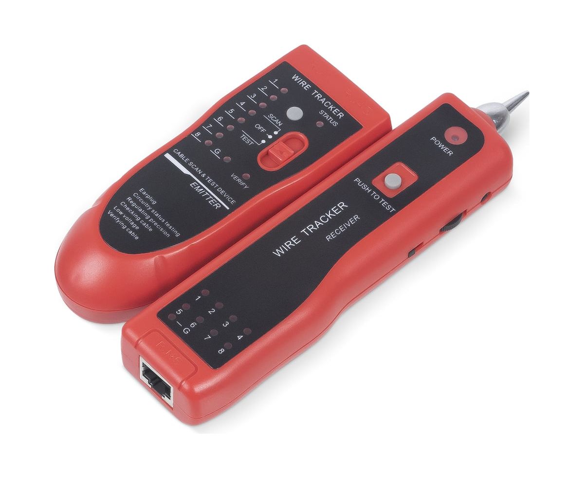 Типы тестируемых кабелей: Витая пара с разъемами RJ45 на концах Тип кабелей для трассировки: Витая пара с разъемом RJ45 Витая пара/телефонный провод с разъемом RJ11 (6р) Любой кабель или провод Блок излучателя: Порт RJ11 (6р) Порт RJ45 (8p8c) Кнопка изменения тональности генератора Кнопка включения и выбора режима работы прибора Блок приемника: Порт RJ45 (8p8c) Кнопка подсветки Регулировка громкости Гнездо для наушников Кнопка включения генератора