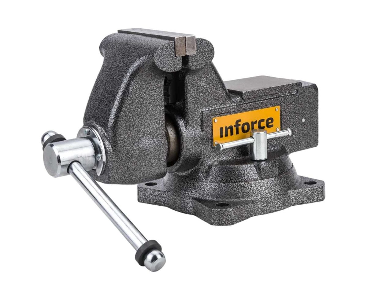Поворотные слесарные тиски Inforce 115 мм 05-23-09 - надежный в работе зажимной инструмент. Устройство широко применяется в слесарных мастерских для обработки заготовок. Модель отличается высокой прочностью и устойчивостью к износу.