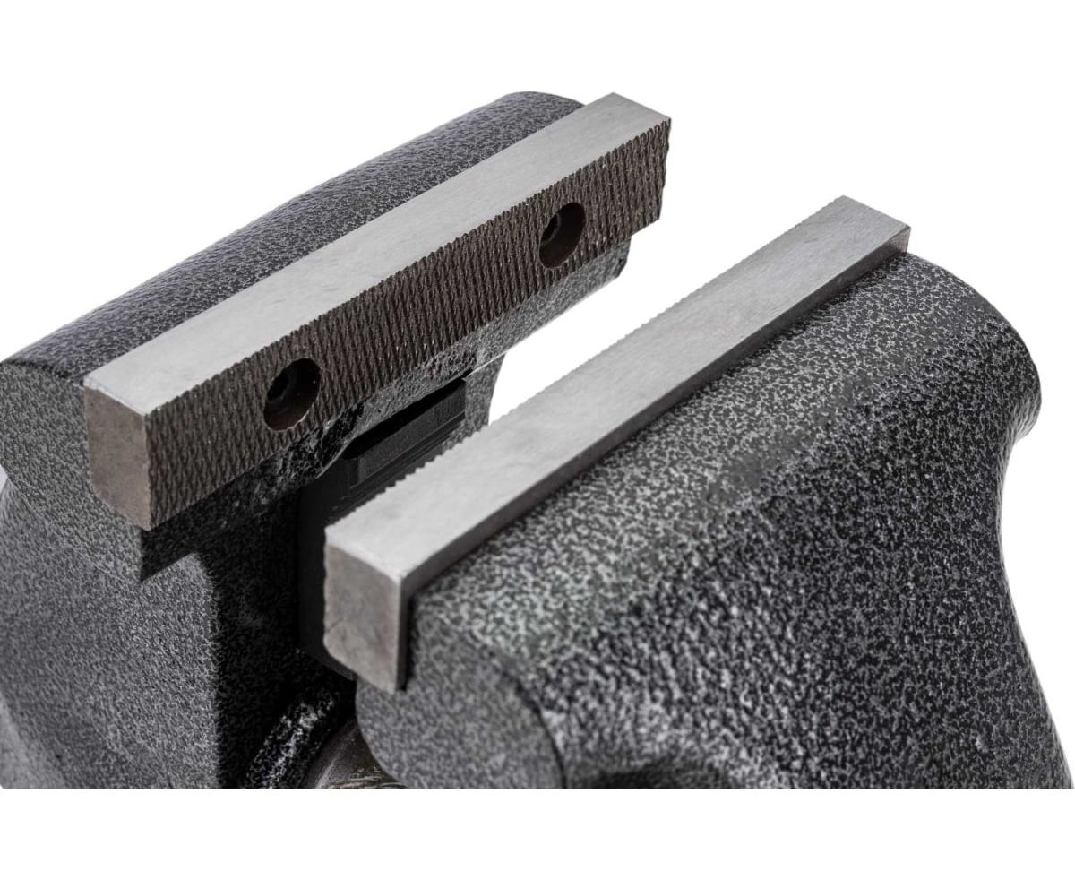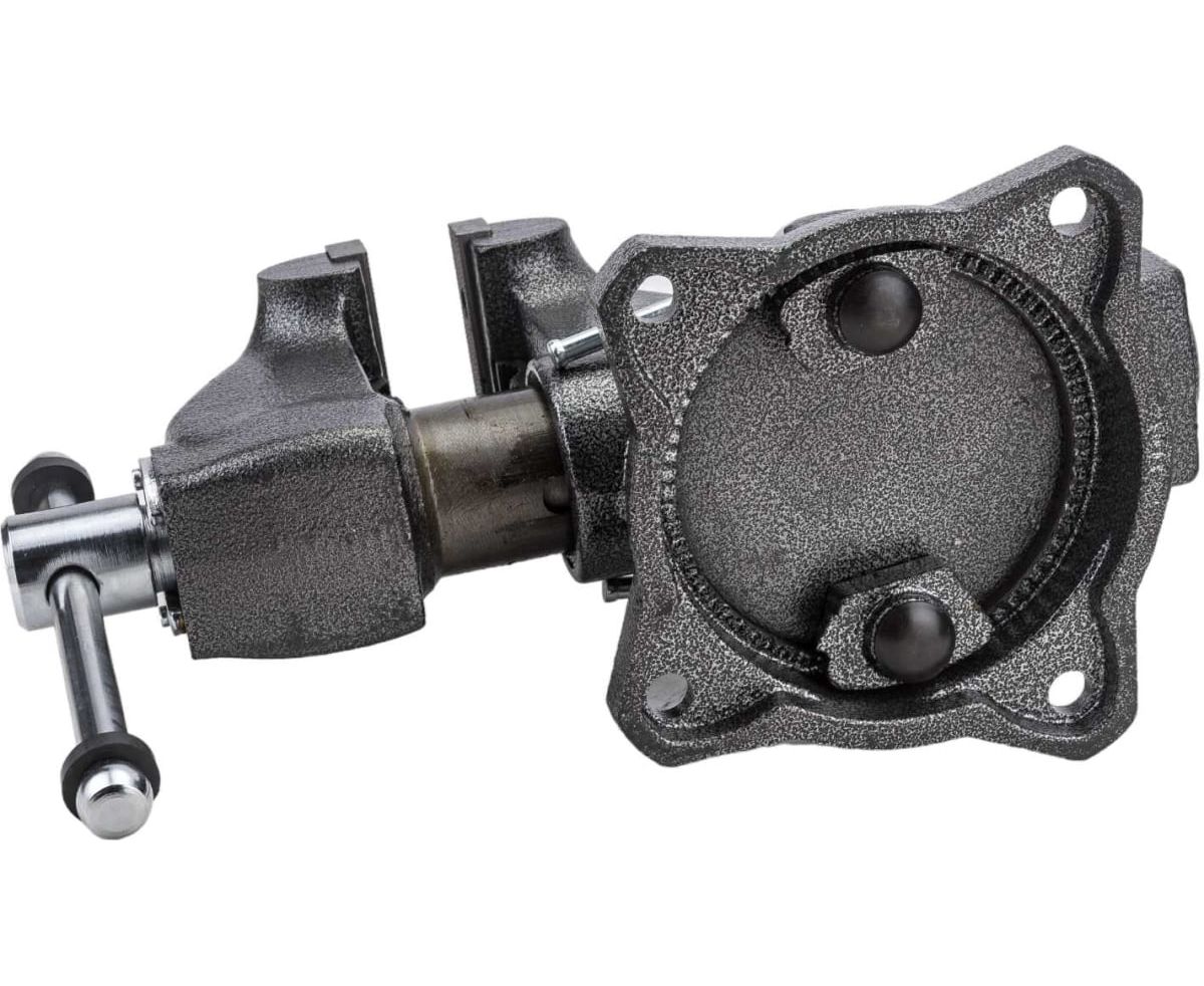 -Тиски с поворотным механизмом на 360°. Прижимной механизм выполнен в виде 2-х прижимных пластин и 2-х усиленных прижимных винтов.