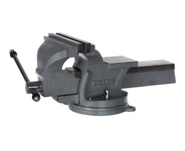 Тиски слесарные поворотные КОБАЛЬТ 248-993 стальные ширина губок 200мм, захват 200мм, 16.5кг, наковальня, коробка