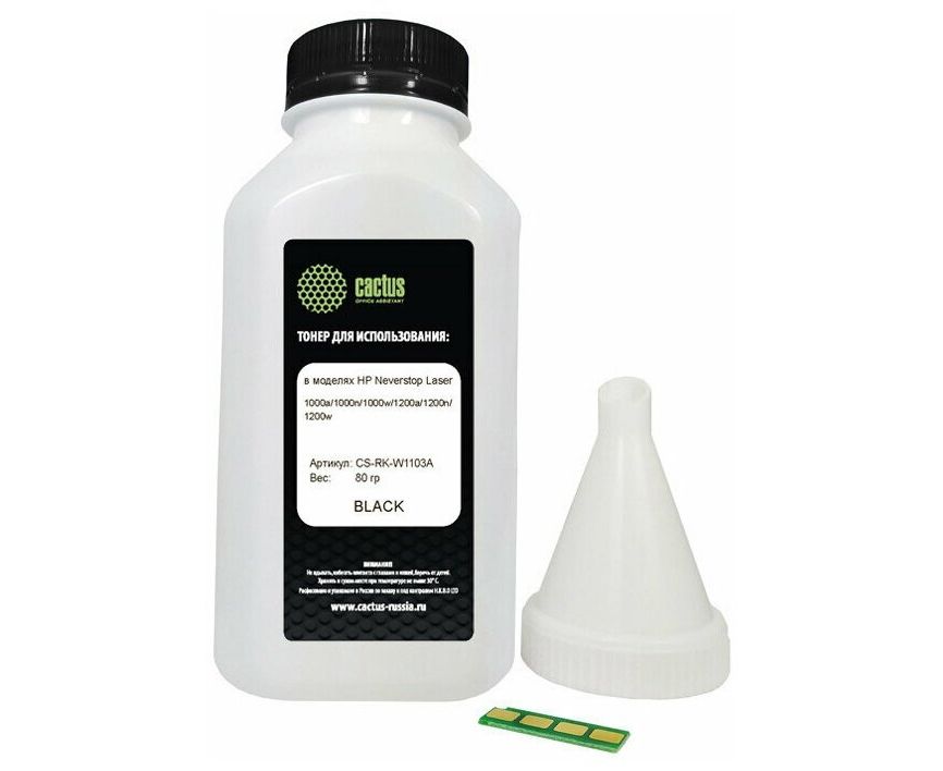 Тонер Cactus CS-RK-W1103A черный флакон 80гр. (в компл.:чип) для принтера HP Neverstop Laser 1000/1200