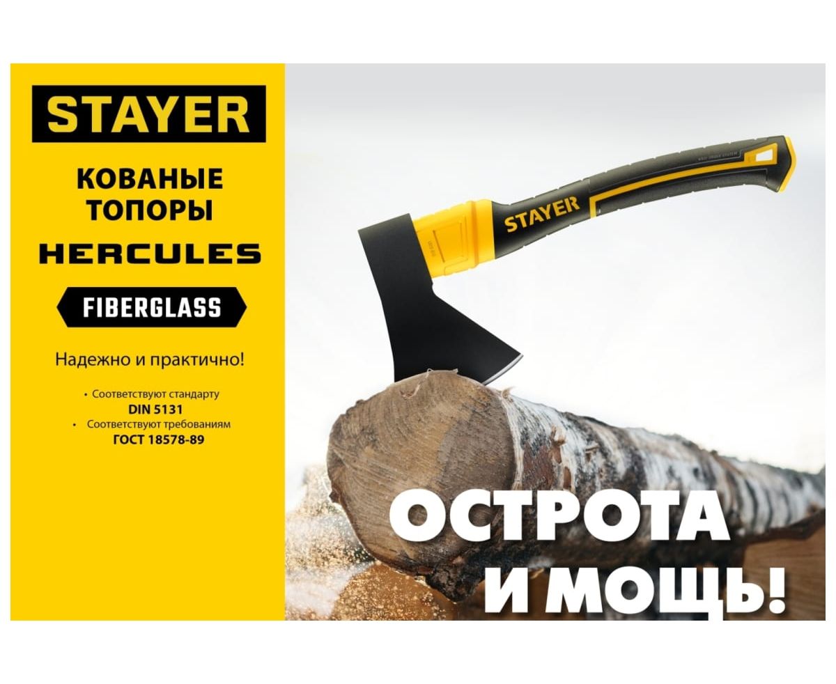 Топор STAYER Fiberglass (2062-06P z02) кованый, с чехлом