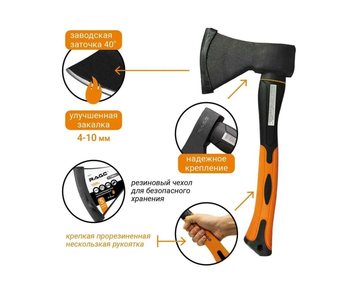 Топор с фиберглассовой рукоятью VIRA RAGE 1000 г 900215 служит для раскалывания, расщепления дров, первичной обработки древесины.