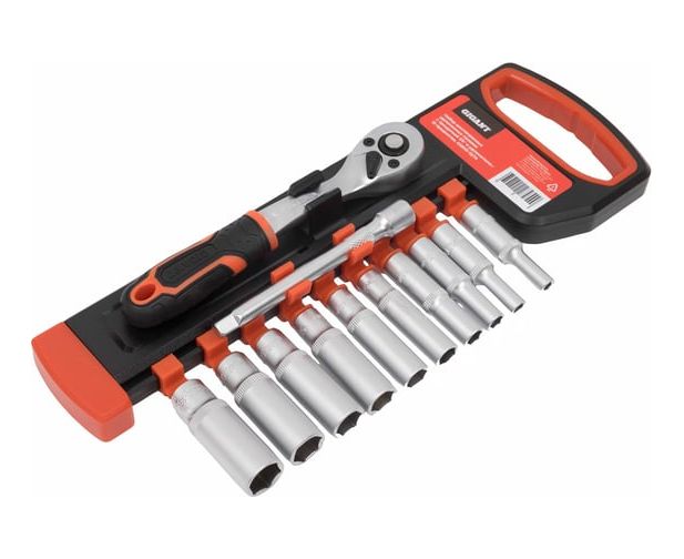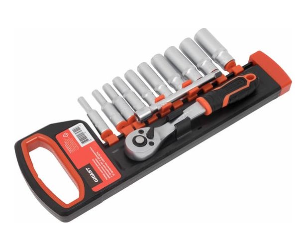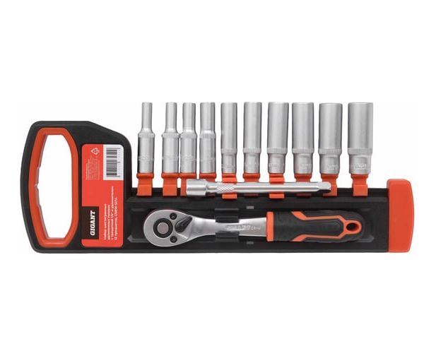 Торцевые головки Gigant GSRW-12/14 шестигранные удлиненных с трещоткой 1/4" и удлинителем, 12 предметов