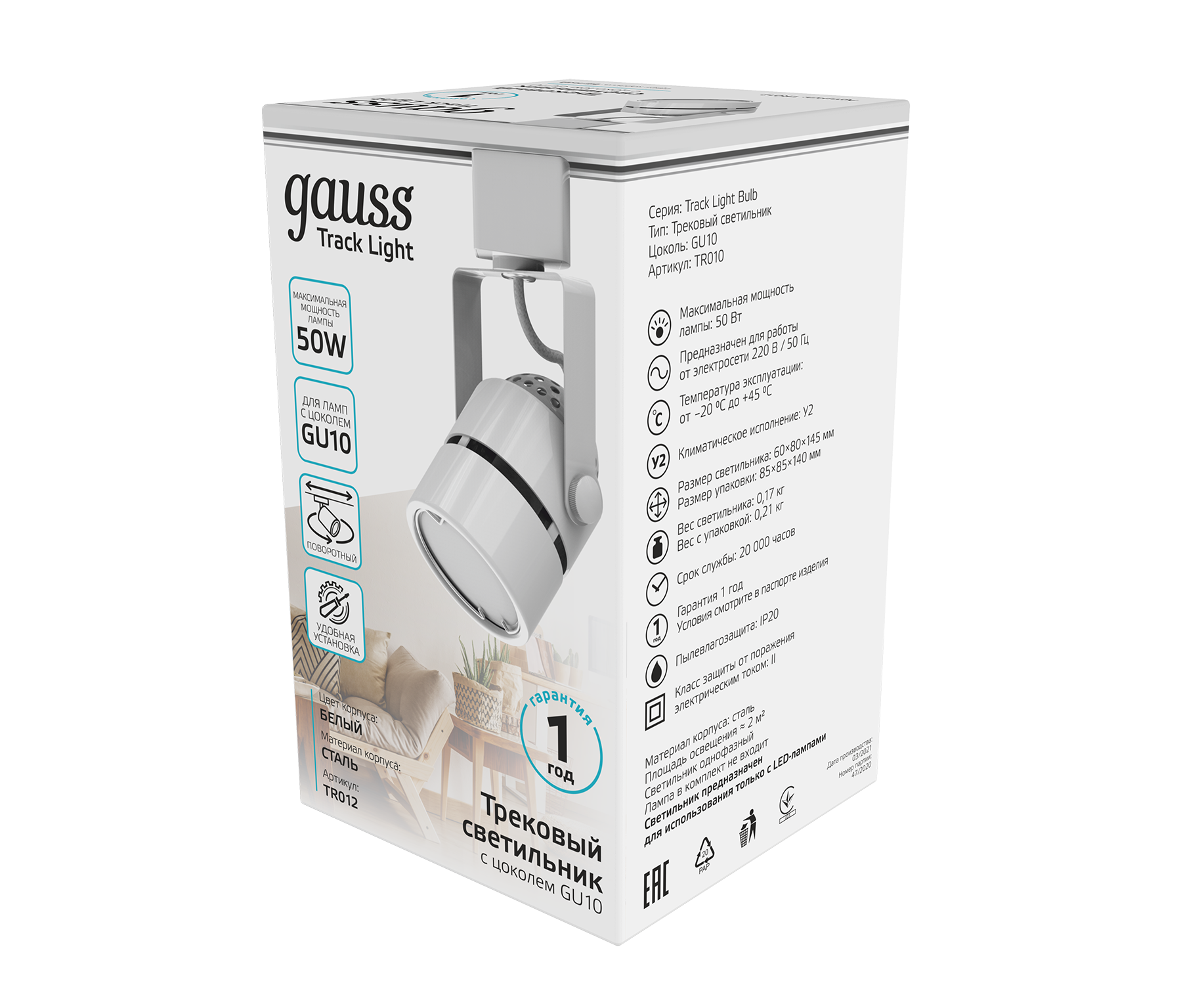 Трековая система GAUSS TR012 белый
