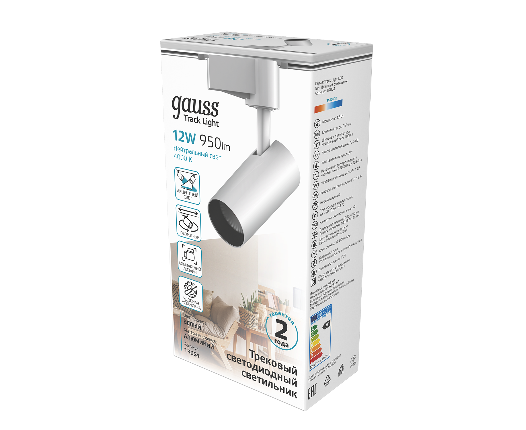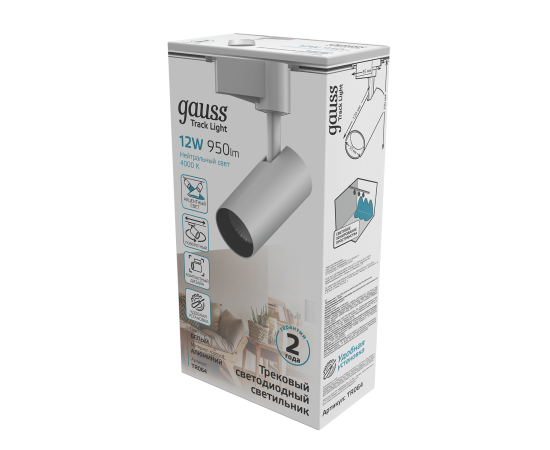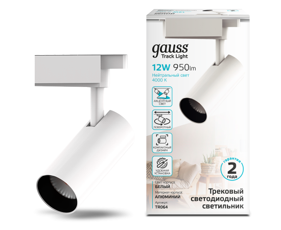 Трековая система GAUSS TR064, 12Вт, 4000К, белый нейтральный, белый