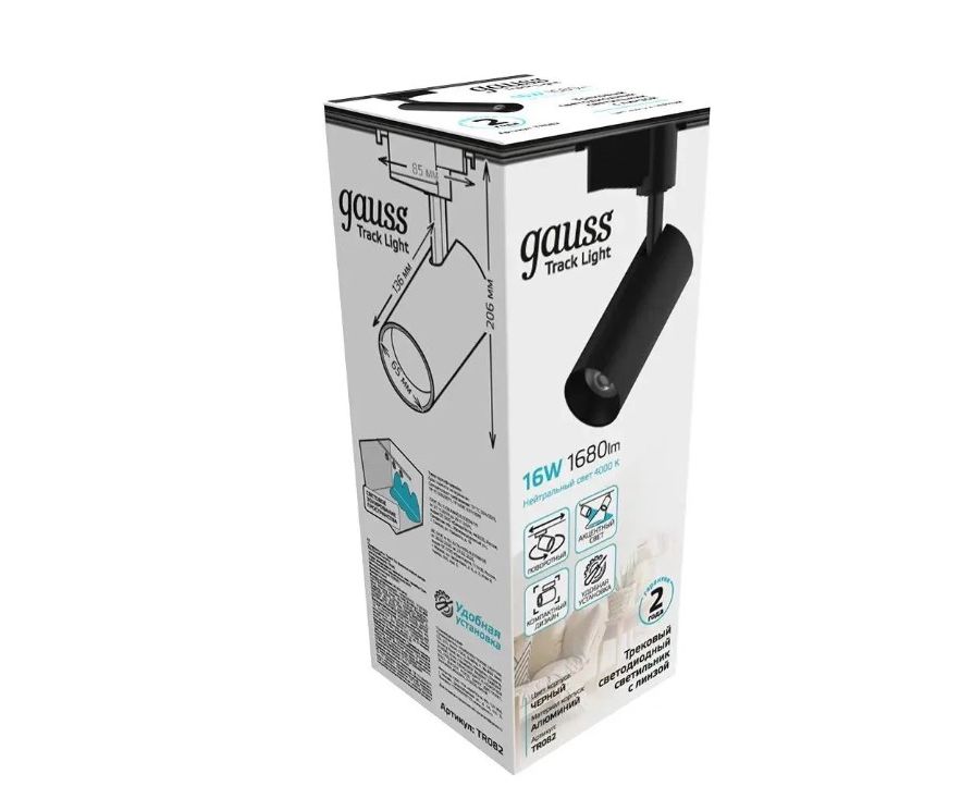 Трековая система GAUSS TR082, 4000К, белый нейтральный, черный