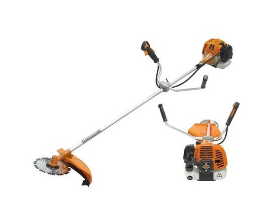 Особенности: Усовершенствованный дизайн; Разъемная штанга; Легкий доступ к воздушному фильтру; Удобное управление, вынесенное на рукоятку; Жесткий вал на 6-ти опорных подшипниках; Наплечный ранец; Облегченный диск с твердосплавными зубьями; Хромированный цилиндр; Усиленный редуктор