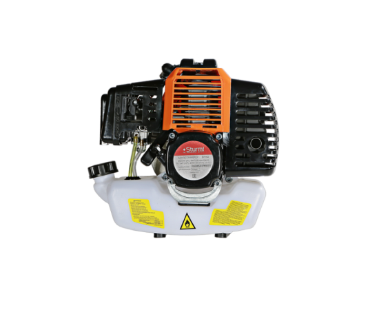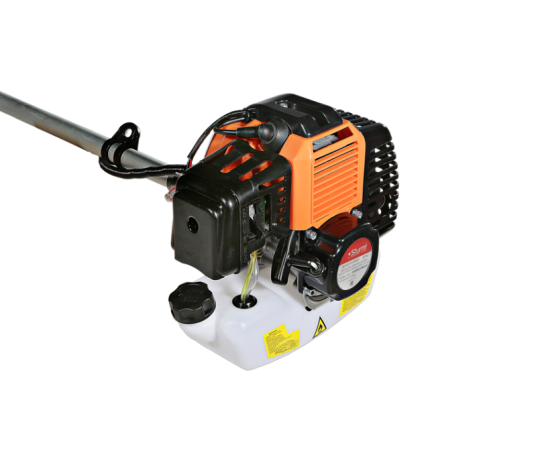 Двигатель триммера имеет хонинговую поршневую группу с покрытием из твердого хрома. Он хорошо сбалансирован и характеризуется стабильной работой во всех положениях без потери мощности и небольшим расходом топлива. Низкий уровень шума позволяет использовать инструмент как в утренние, так и в вечерние часы, не мешая окружающим людям. Оптимизированный редуктор обладает повышенной стойкостью к механическому воздействию – он без труда справляется с любой растительностью. Топливный бак имеет полупрозрачные стенки из пластика, что упрощает контроль за уровнем горючего.