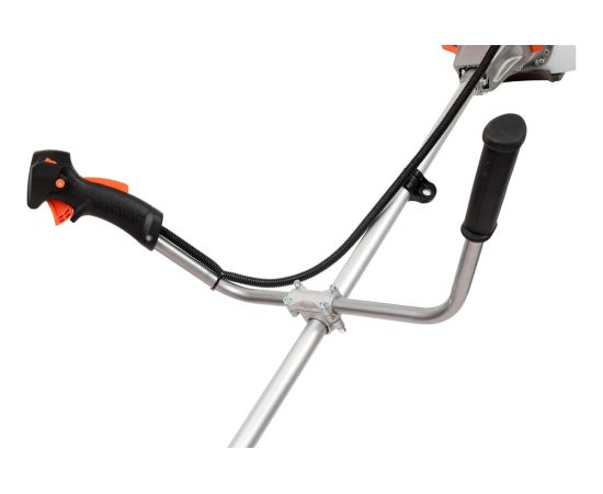Оснащенный мощным двухтактным двигателем объемом 52 см³, он обеспечивает высокую производительность и эффективность при выполнении задач по скашиванию травы. Верхнее расположение двигателя способствует удобству эксплуатации и снижению вибрации. Прямой приводной вал гарантирует надежность и долговечность конструкции, а U-образная велосипедная ручка обеспечивает комфортное управление.