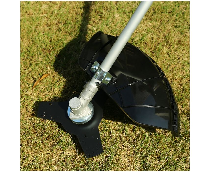 Технические характеристики: Напряжение: 220-240 В. Частота: 50-60 Гц, Мощность: 1500 Вт, Скорость холостого хода: 5500 об/мин, Ширина скашивания: 400 мм, Комплектация: 1 шт триммер, 1 шт лезвие, 1 шт катушка с леской, 1 шт штифт блокирующий, 1 шт ремень, 2 шт шестигранный ключ, 1 шт ключ с открытым концом, 1 шт ключ для фиксации пильного полотна, 1 шт комплект крепежа
