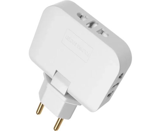 Плоский поворотный тройник-адаптер предназначен для одновременного подключения трех электроприборов к одной сетевой розетке