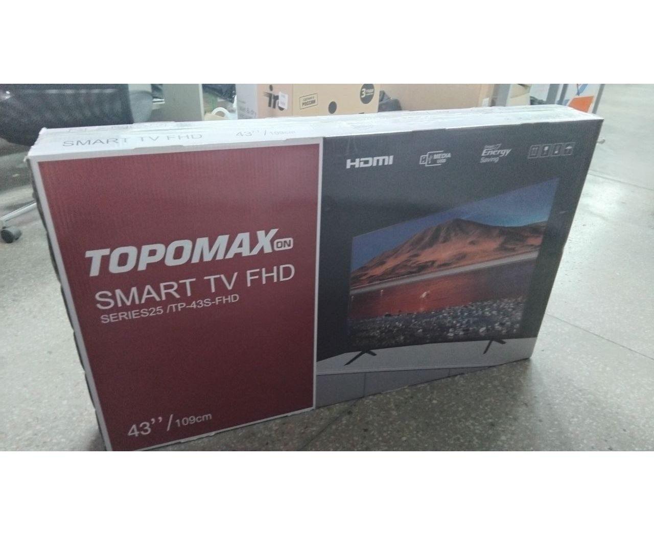 УЦ 43" Телевизор TOPOMAX (TM43FHSBK) черный 1920x1080, Full HD, 60 Гц, Wi-Fi, Smart TV, (После СЦ. Замена линейки матрицы. Полоса на дисплее. ПУ)