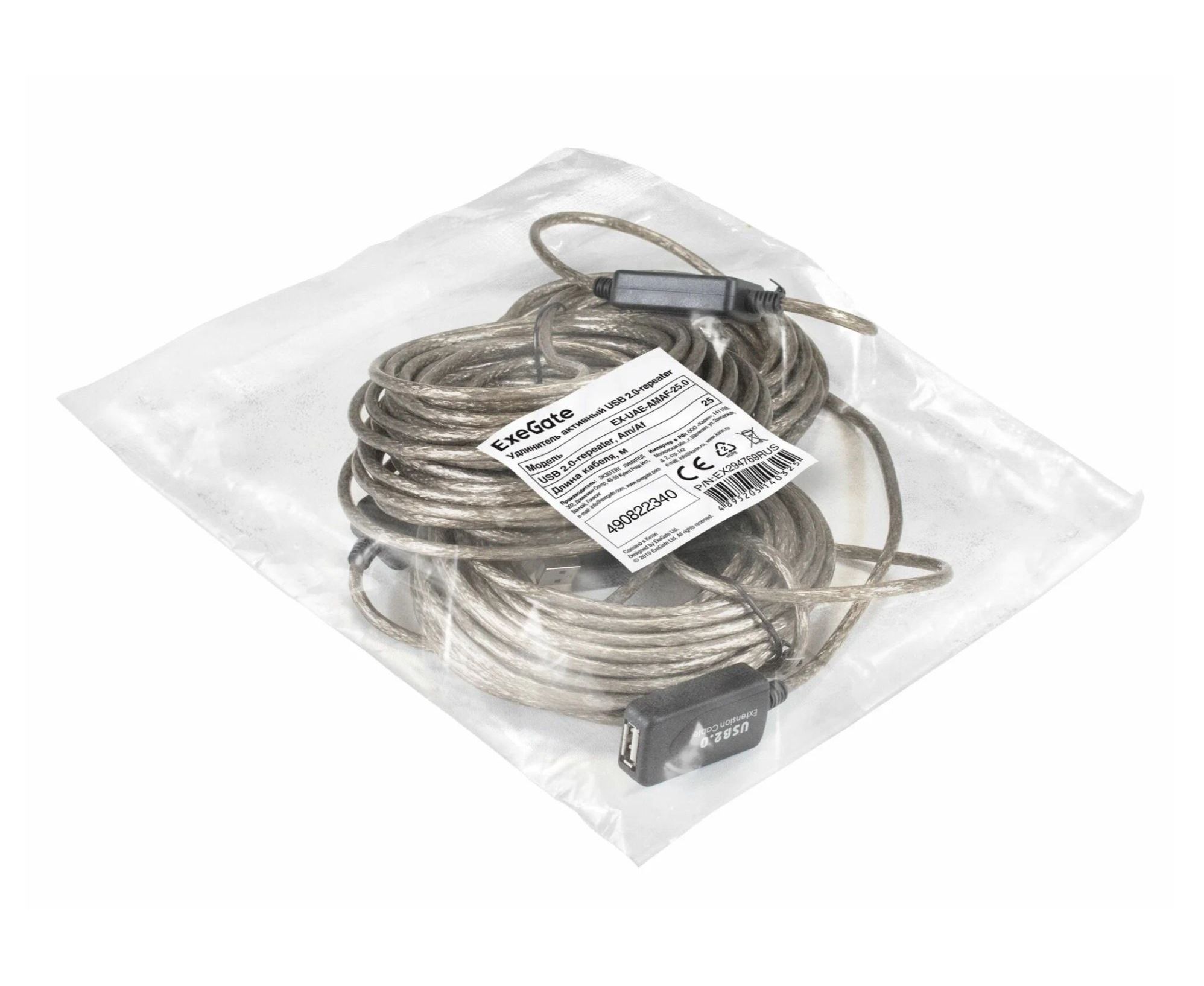 Удлинитель активный ExeGate EX-UAE-AMAF-25.0 EX294769RUS USB2.0-repeater Am/Af 25м