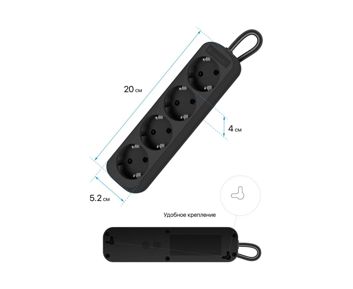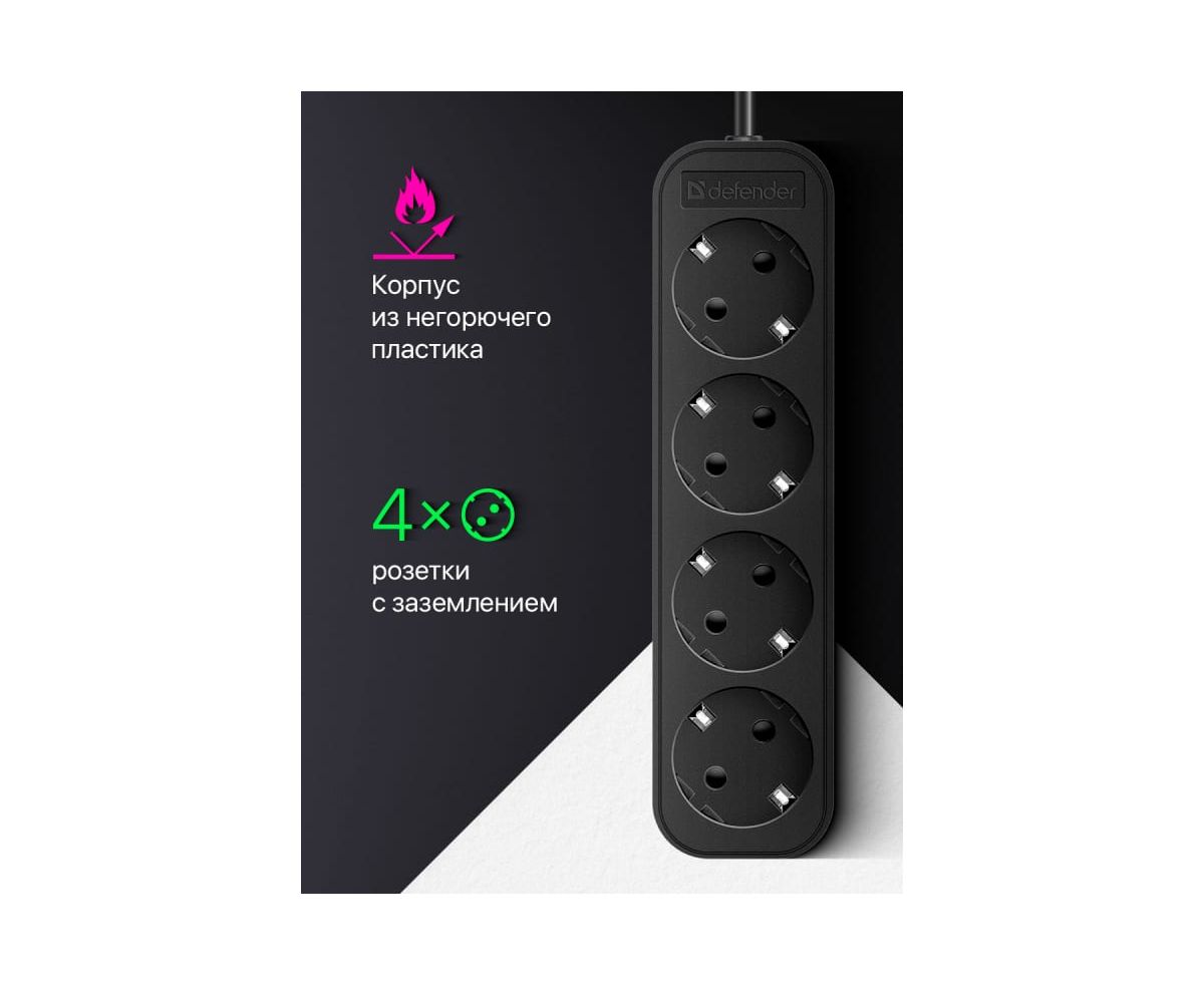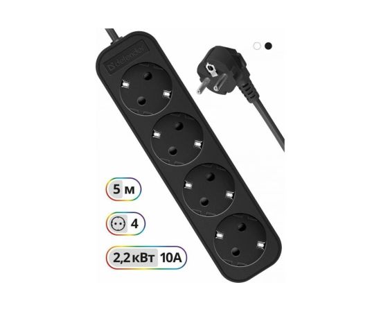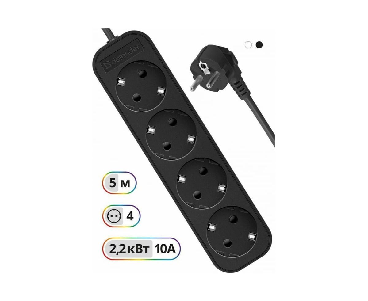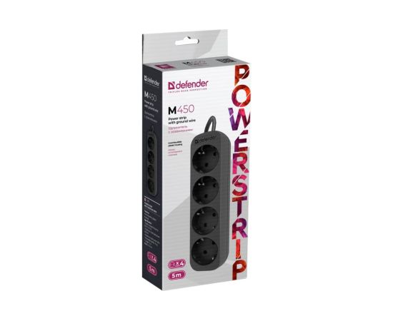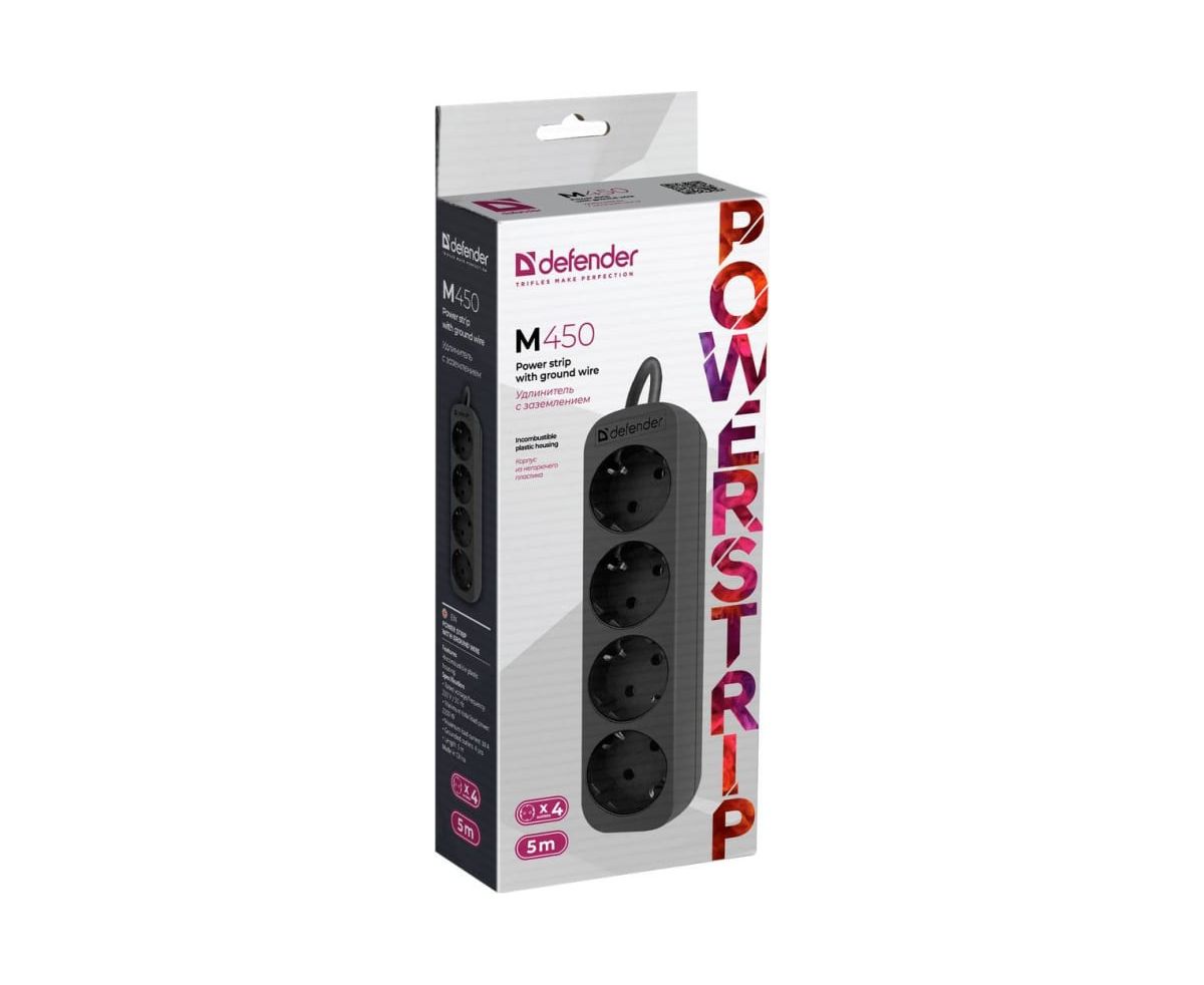 Удлинитель Defender M450 (99327) 5.0 м, 4 розетки, черный