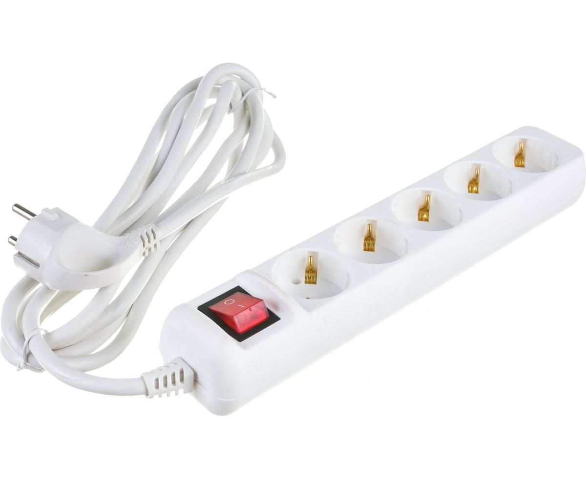 Удлинитель электрический ЭРА Б0044044 U5es3m3x1,5 с заземлением с выключателем 5 розеток 3м ПВС 3x1,5мм2 16А