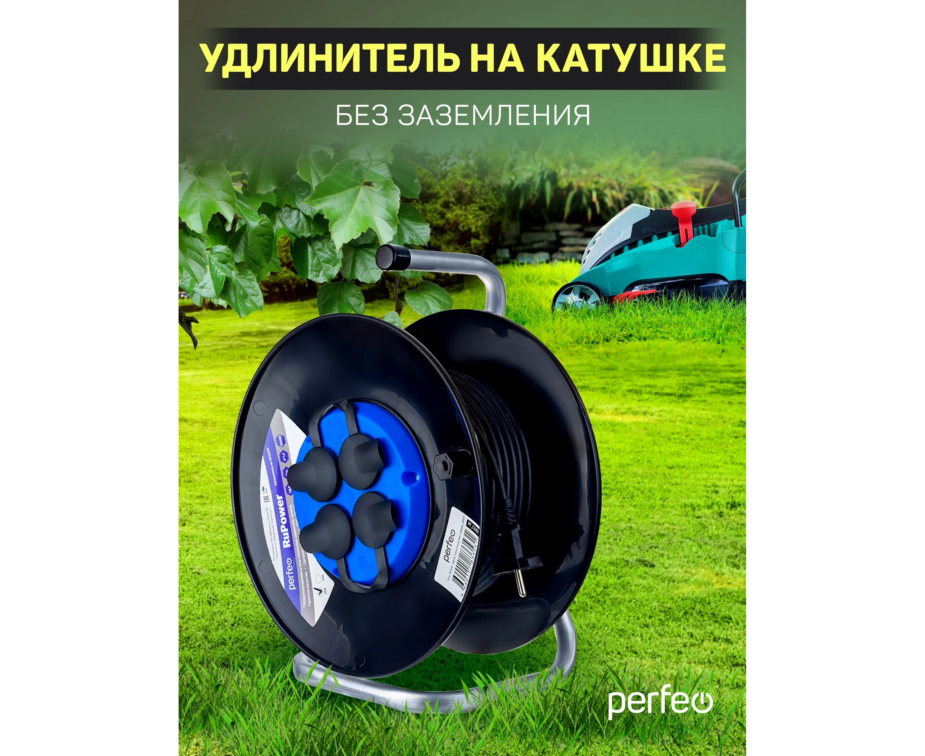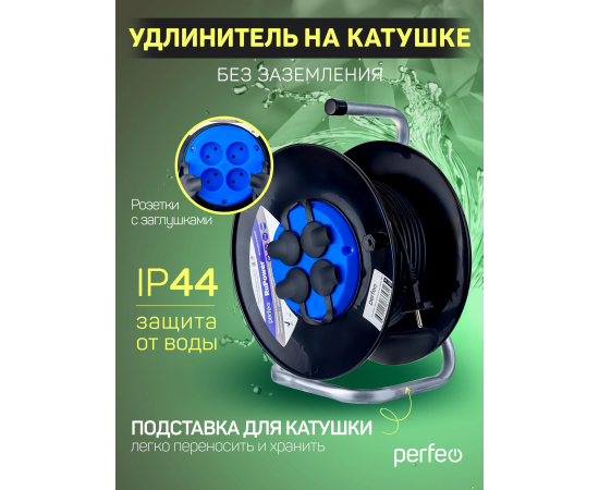 Удлинитель на катушке Perfeo без заземления "RU POWER" 20м 4гн 16А ПВС 2х1,5 IP44 (РБК16), (Арт. PF_C3353)