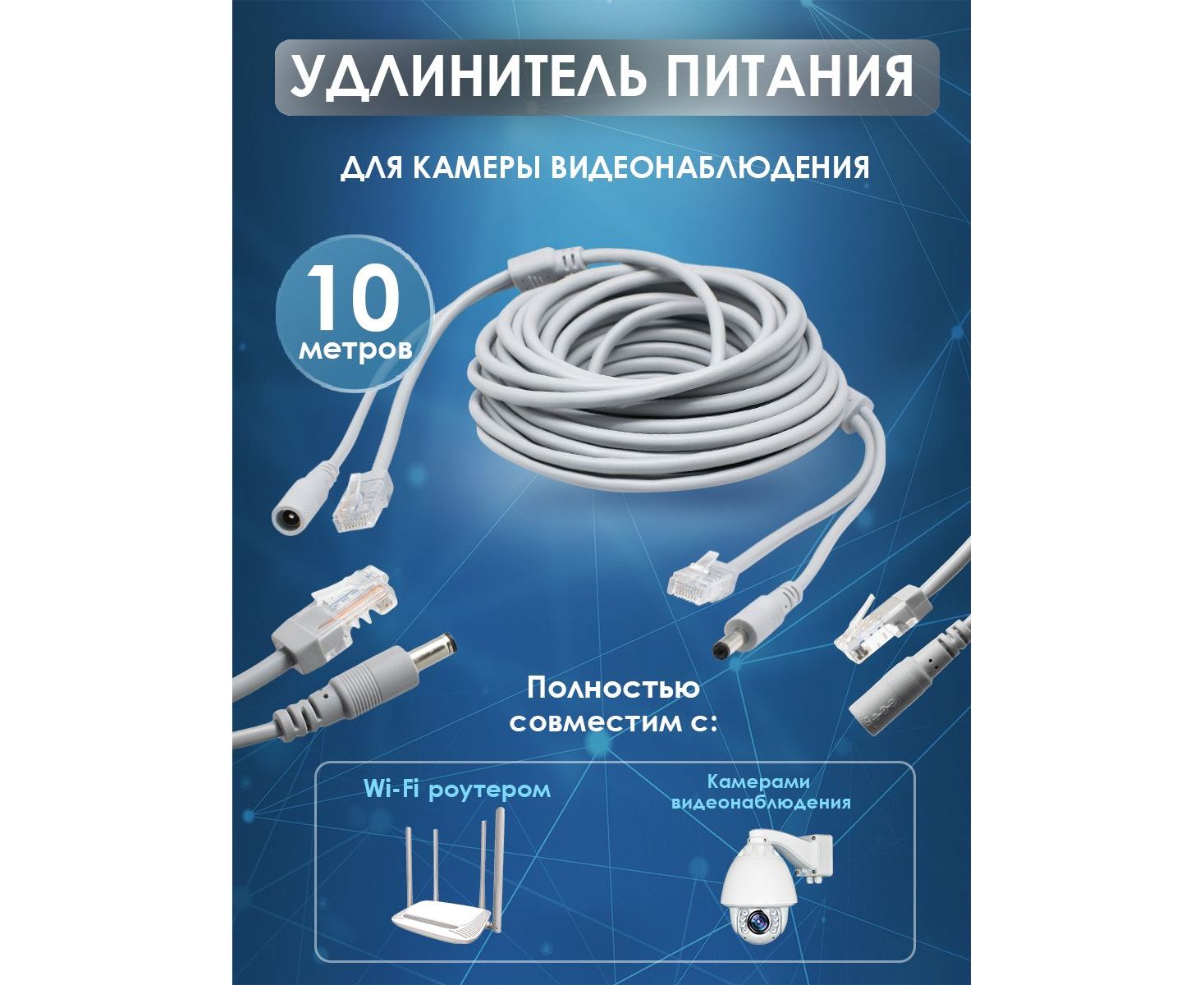 Удлинитель питания DC 2.1x5.5 с патч-кордом - это универсальное устройство, предназначенное для соединения сетевых устройств с интерфейсом 8P8C и подключения питания к устройствам с гнездом DC 2.1x5.5. Удлинитель оснащен патч-кордом Cat5e с разъемом RJ-45, что позволяет использовать его для IP камер видеонаблюдения, роутеров, 3G/4G модемов, фото- и видеотехники, светодиодных лент и других различных устройств. Кроме того, данный удлинитель поддерживает Ethernet-соединение, что обеспечивает быструю и стабильную передачу данных. Он имеет рабочую температуру от -15°C до +35°C, что позволяет использовать его в различных условиях. Номинальное напряжение составляет 12В, а частота тока равна 50 Гц. Удлинитель питания DC 2.1x5.5 с патч-кордом отличается надежностью и функциональностью, обеспечивая удобство и универсальность при подключении различных устройств к питанию и сети. Не важно, нужно ли вам удлинить питание камеры видеонаблюдения, подключить другие устройства или обеспечить стабильное соединение - наш серый кабель питания готов решить эти задачи с высокой эффективностью и надежностью.