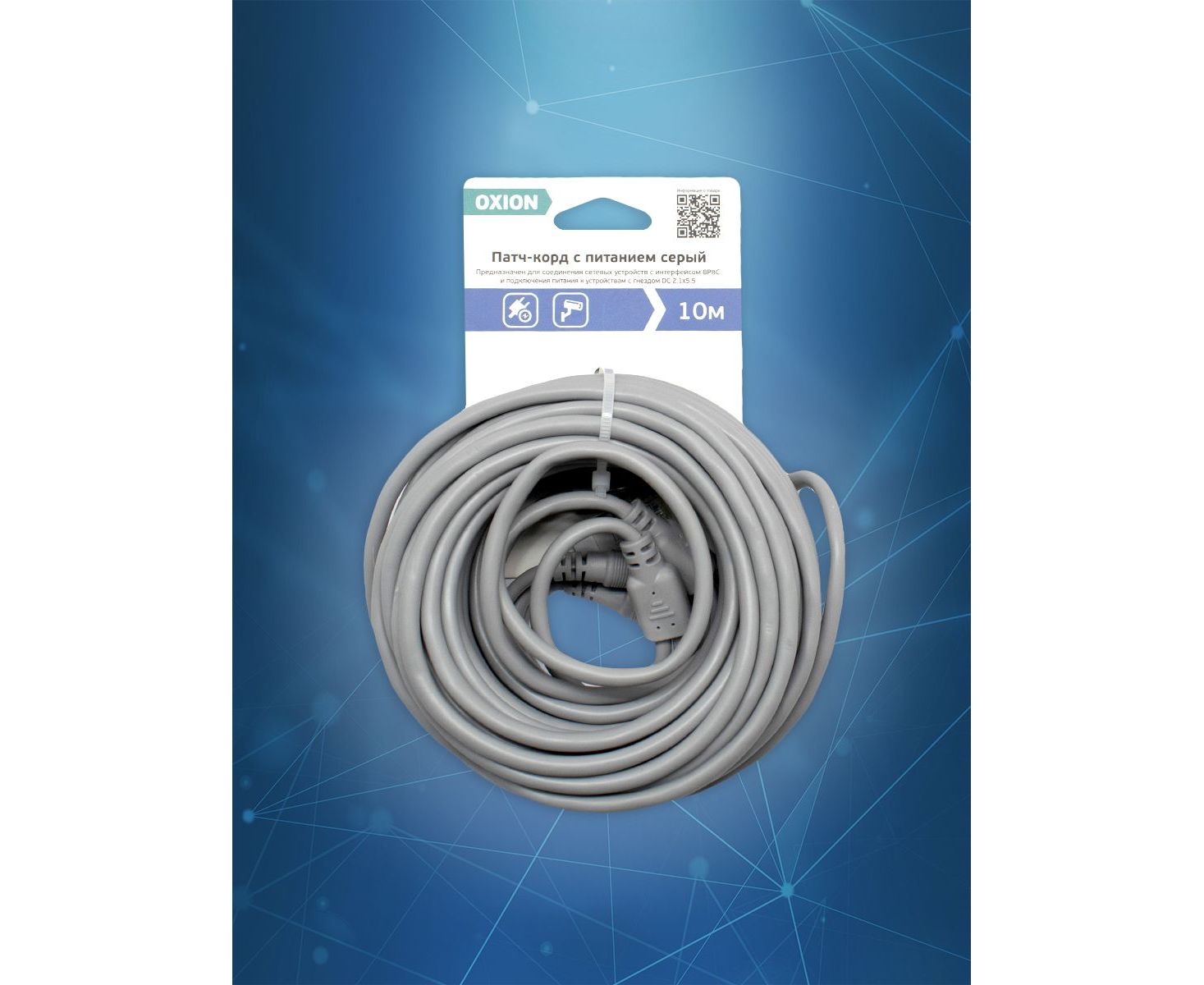 Удлинитель питания DC 2.1x5.5 с патч-кордом, 10 метров, серый