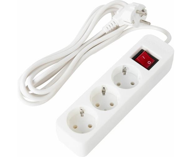 Удлинитель сетевой SONNEN PSW-303 (513660) 3 розетки c заземлением, выключатель 10А, 3м белый