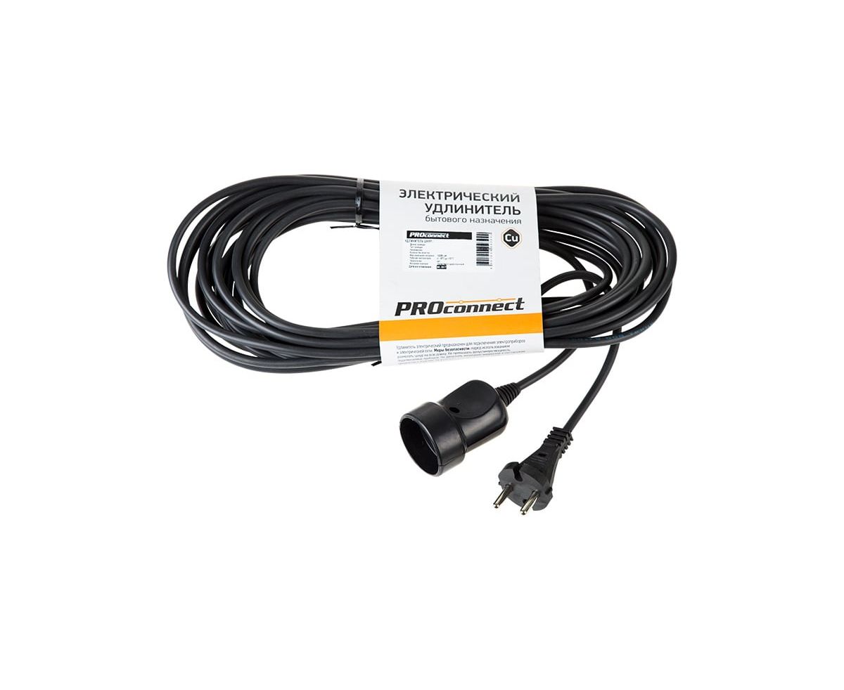Удлинитель силовой PROconnect PROc-Uc 11-7114 2x0.75кв.мм 1розет. 10м ПВС 6A без катушки черный