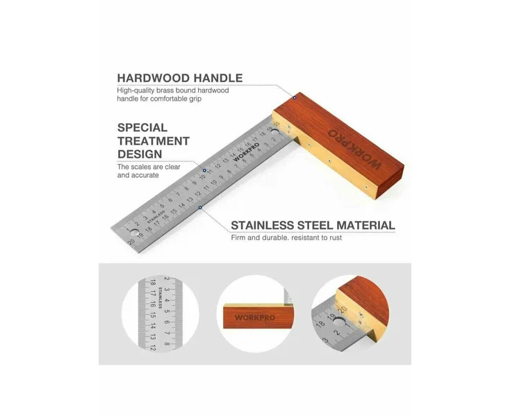 Угольник WORKPRO WP264004 с деревянной ручкой 200мм