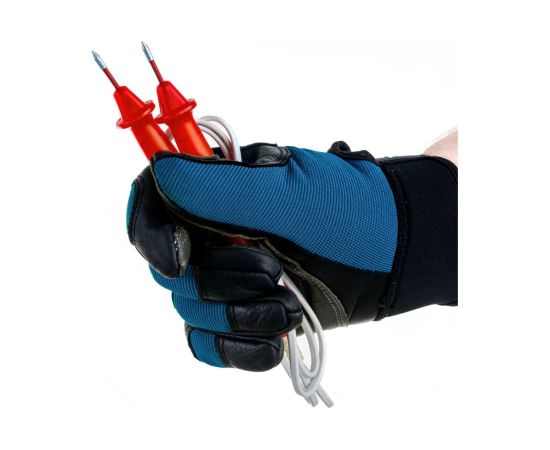 Указатель низкого напряжения Антиток УНН-1Д 40-1000В 157697 выполнен в двухполюсном исполнении и состоит из двух корпусов, содержащих элементы электрической схемы. Корпуса указателя соединены между собой гибким проводом. Электрическая схема двухполюсного указателя напряжения имеет контакты-наконечники и неоновой лампы в корпусе изделия, обеспечивающая визуальную индикацию наличия напряжения. Определение наличия напряжения следует производить путем касания контактами-наконечниками токоведущих частей. Свечение обоих светодиодов свидетельствует о наличии переменного тока, свечение одного из них определяет наличие напряжения постоянного тока, причем светящийся светодиод соответствует положительному потенциалу.