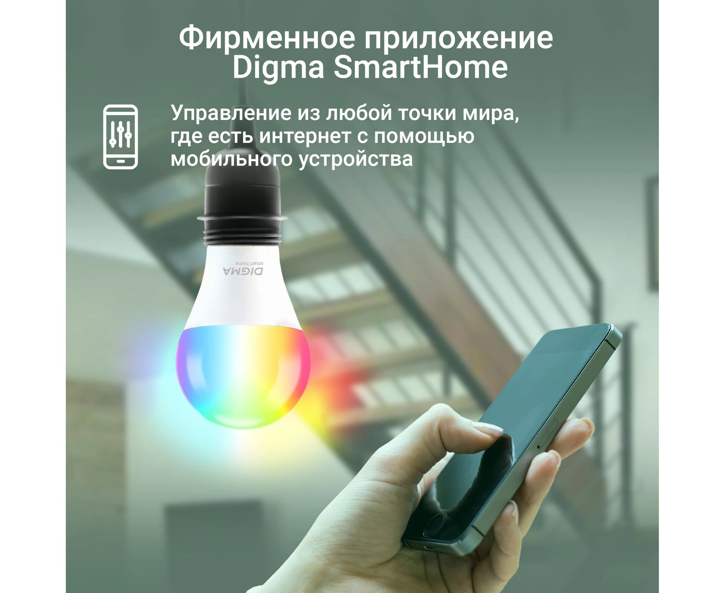 Лампы серии Digma DiLight предназначены для использования в качестве источника освещения внутри помещений. Устройства снабжены функцией дистанционного контроля через сеть интернет посредством мобильного приложения.