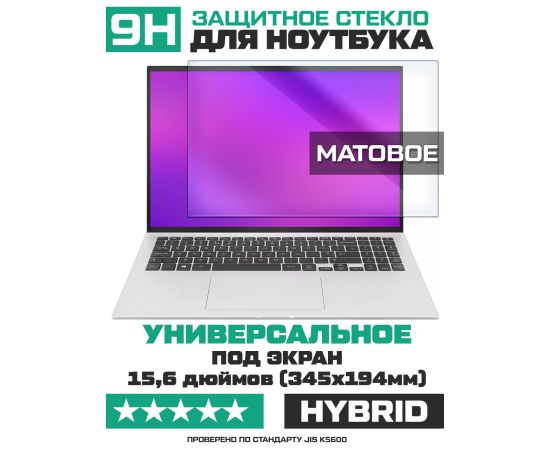 Универсальное защитное гибридное стекло МАТОВОЕ Krutoff для ноутбуков 15,6 дюймов (345х194мм)
