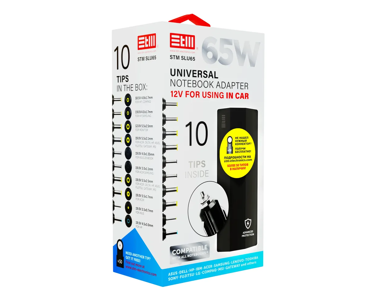 Универсальный адаптер для ноутбуков STM SLU65 NB 65W, Car