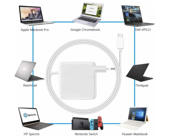 Адаптер питания KS-510 USB C мощностью 90Вт: более высокая производительность зарядки, чем у зарядного устройства USB C 61 Вт / 30 Вт при зарядке для MacBook Pro 13 дюймов, 12 дюймов, New Air.