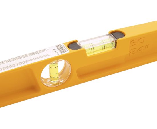 Уровень DENZEL литой, 600 мм, 2 глазка, ударные площадки 34935, корпус изготовлен методом литья. Ударные площадки на обоих концах благодаря которым, он применяется практически при любой работе, от установки мебели до укладки кирпичной кладки или керамической плитки.