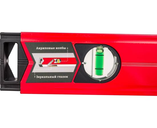 Алюминиевый фрезерованный магнитный уровень Gigant Professional GPGW-100-1 оснащен 3 глазками и одним зеркальным отражателем. С его помощью можно выявить отклонения от вертикали, горизонтали и угла 45 градусов. Встроенный зеркальный глазок повышает удобство работы, позволяя легко считывать показания. Для определения отклонения вертикали 90 градусов необходимо использовать пузырьковую ампулу только в верхнем положении уровня. Только базовая поверхность является рабочей (противоположная ампуле 180 градусов).