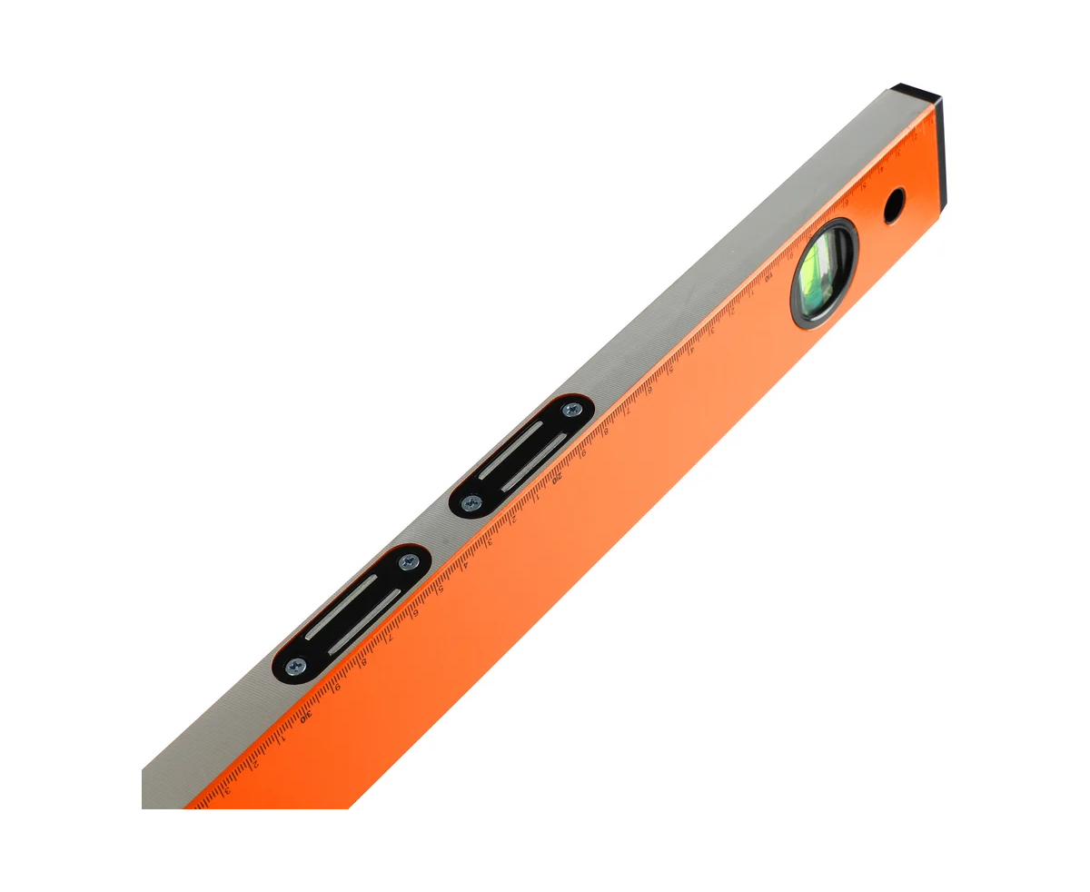 Уровень строительный LRP-1200 длиной 1200 мм для определения отклонения плоскости относительно горизонтали или вертикали с точностью до 0,5 мм/м. Корпус выполнен из алюминиевого сплава, устойчивого к коррозии. Торцы заглушки обеспечивают устойчивость к деформациям при падании.