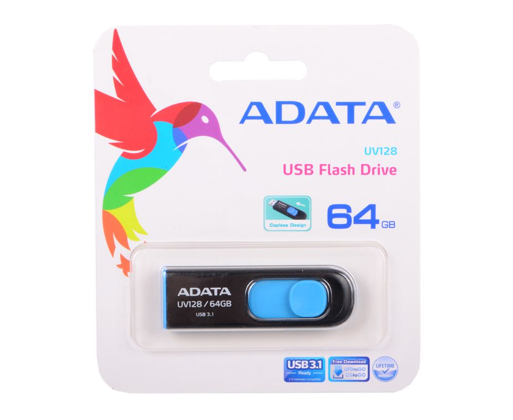 USB-флешка A-DATA AUV128-64G-RBE 64GB UV128, USB 3.0, черный/синий