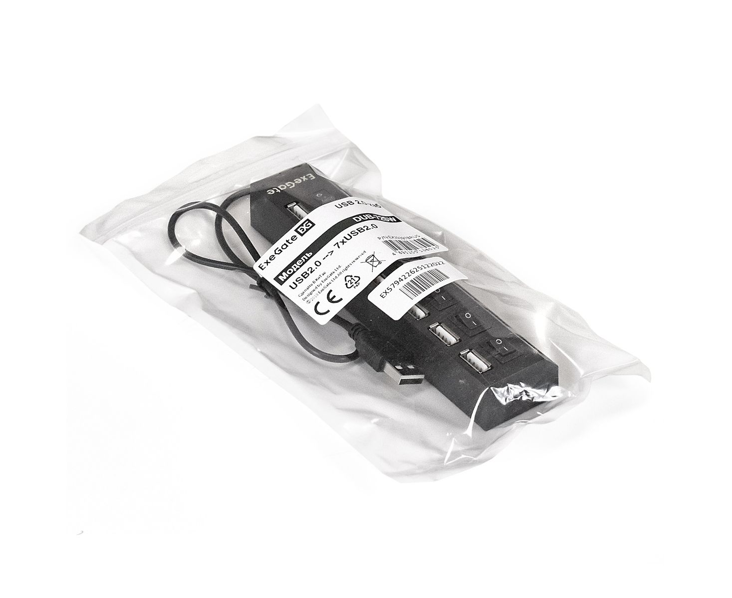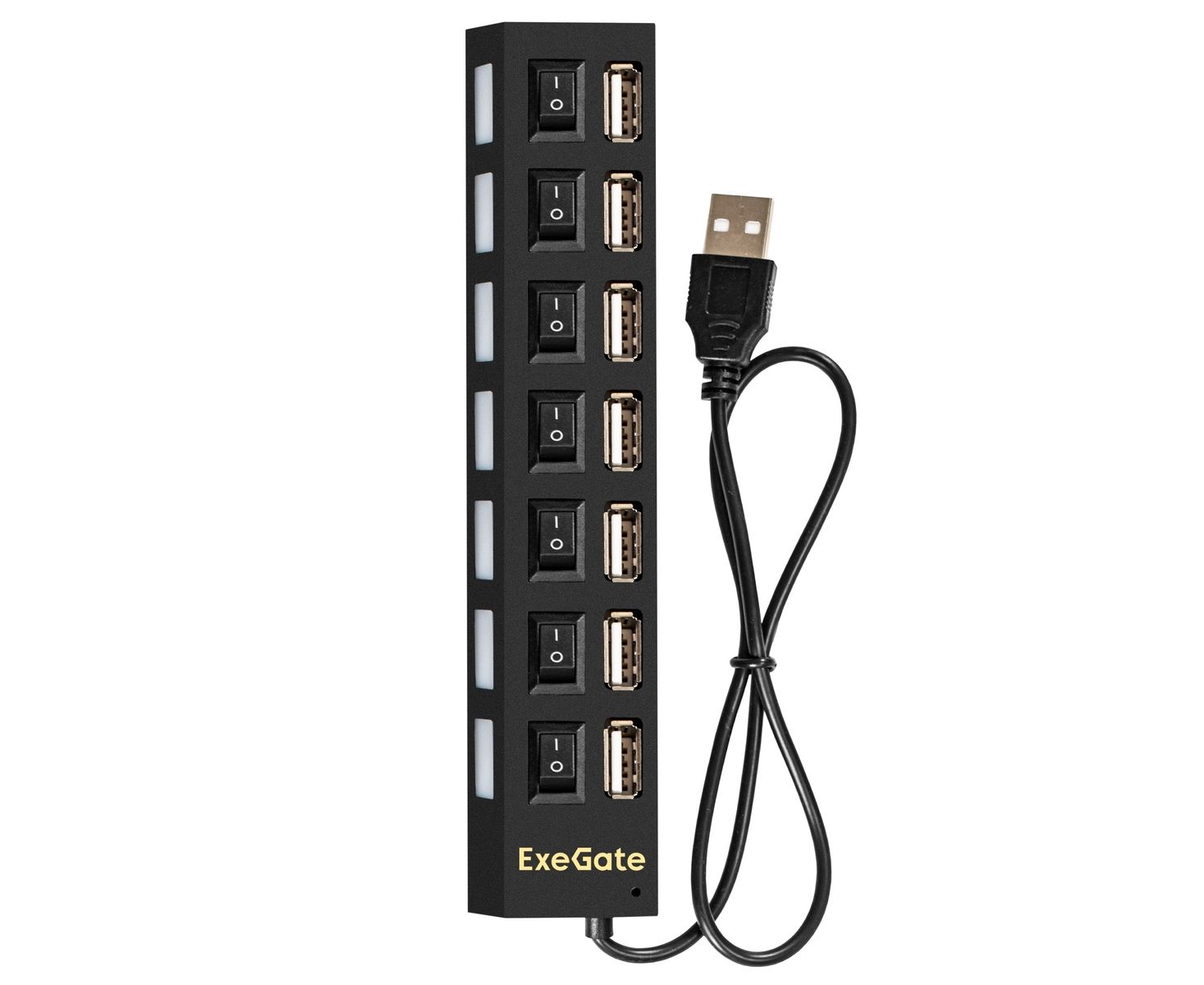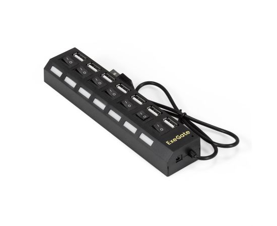 USB-Хаб концентратор ExeGate DUB-72SW EX293978RUS кабель-адаптер USB2.0 -- 7xUSB2.0 кнопки включения/отключения для каждого порта Plug&Play черный