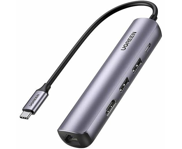 USB Hub UGREEN CM418 10919 USB-C to 2*USB 3.0+HDMI+RJ45 Ethernet Adapter+PD space gray