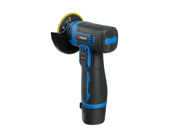 Угловая шлифовальная машина РОКОТ аккумуляторная мини, 12 В – это компактный электроинструмент, предназначенный для полировки, шлифовки, резки и других типов обработки различных поверхностей. Мощность – 450 Вт. Диаметр диска – 75 мм. Скорость вращения – 19500 об/мин. Инструмент надежный, производительный, абсолютно автономный, удобно лежит в руке и имеет невысокий вес. Защитный кожух предотвращает попадание мелких частиц в глаза, а также защищает руки от повреждений в случае отлома диска. Емкость аккумулятора 2.0 А*ч. Батарея быстро заряжается. В комплекте идет шестигранный ключ.