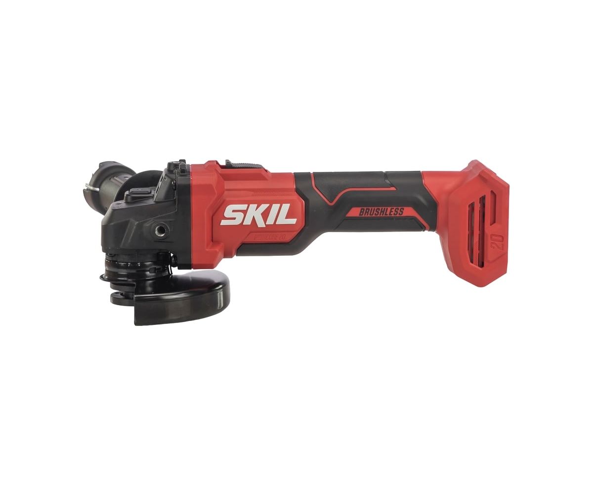 Защитный кожух регулируется без инструмента с помощью системы CLIC — для быстрой адаптации под направление искр. Фиксация шпинделя упрощает замену оснастки, а защита от случайного пуска блокирует включение инструмента при установке аккумулятора, если переключатель уже находится во включённом положении.