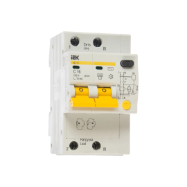 Дифавтомат IEK АД12 (MAD10-2-016-C-010) 16A тип C 4.5kA 10мА AC 2П 230В 3мод белый (у...